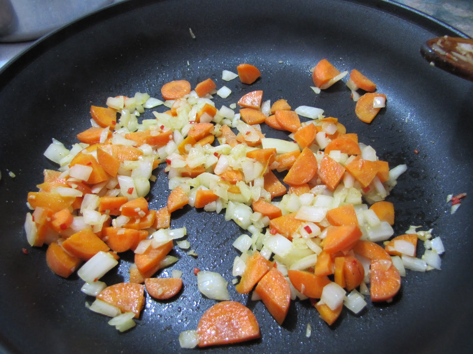 Add carrot, onion, and cumin and saute until onions are translucent and carrots are softer (but not fully cooked).